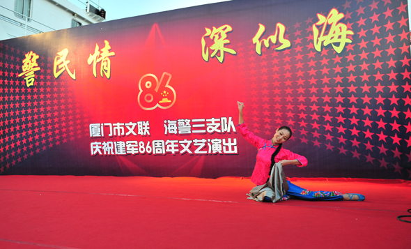 简讯:2013警民情 深似海——厦门市文联警民共建暨文艺进警营活动于7月23日下午在厦门海警三支队码头举行,市舞蹈家协会理事卓然,会员程玲为海警官兵带去了舞蹈家协会最美好的问候。